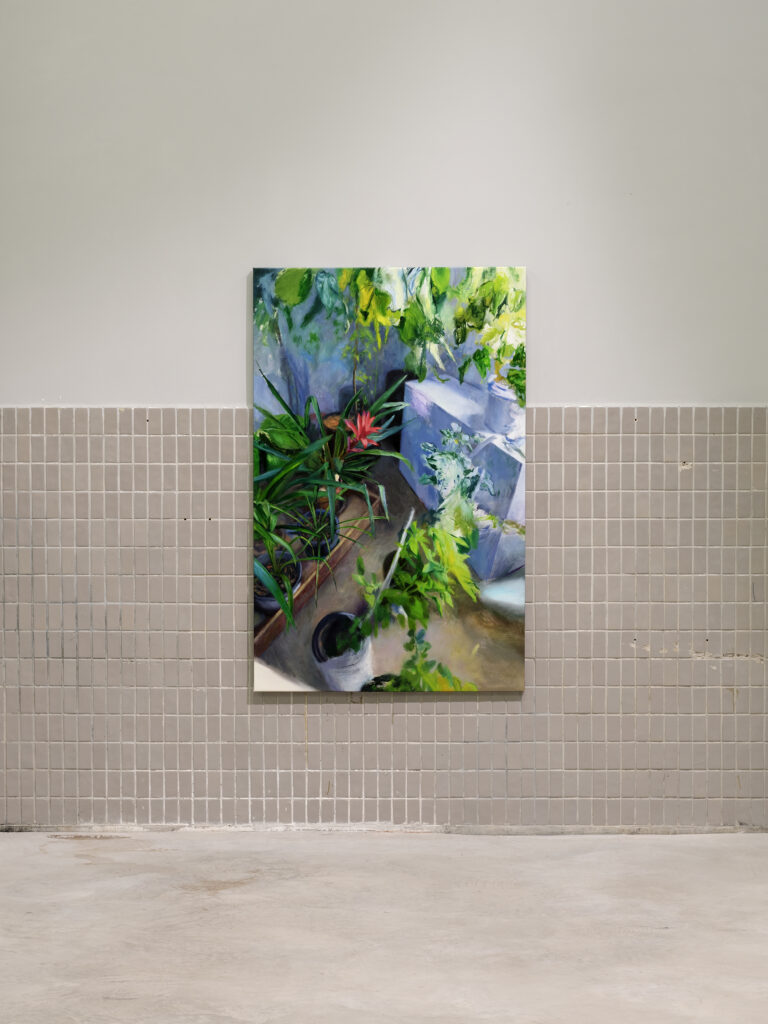 Micu explores how lived reality becomes an image. Working from a unified domestic – studio – balcony garden, she observes how light, plants, and objects condition one another. Paintings begin with photographs and are reformulated through subtle shifts in light, colour, and composition—slowing perception and turning representation into a space for mental dwelling. In the exhibition, this ethic of attention extends into video, where observation becomes responsible intervention and care becomes a compositional criterion.